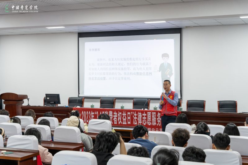中国青瓷学院开展“帮信罪”法律知识普及讲解活动,邀请浙江丽阳律师事务所张帮律师为学生讲解帮助信息网络犯罪活动罪的法律知识。他围绕“帮信罪”的概念、现状、处罚等内容,结合学生身边的具体案例,生动讲解了“帮信罪”的危害与普发性。他向同学们强调三点:不贪图小利,不存侥幸心理,不能不知不懂。