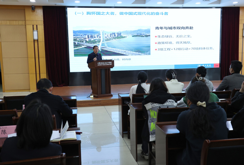 课上,王利琳围绕“三件大事极不寻常”“丽院启航奋勇争先”“时代青年共赴未来”三个篇章,向同学们解读着时事热点、描绘着丽院蓝图,并提出殷切希望。
