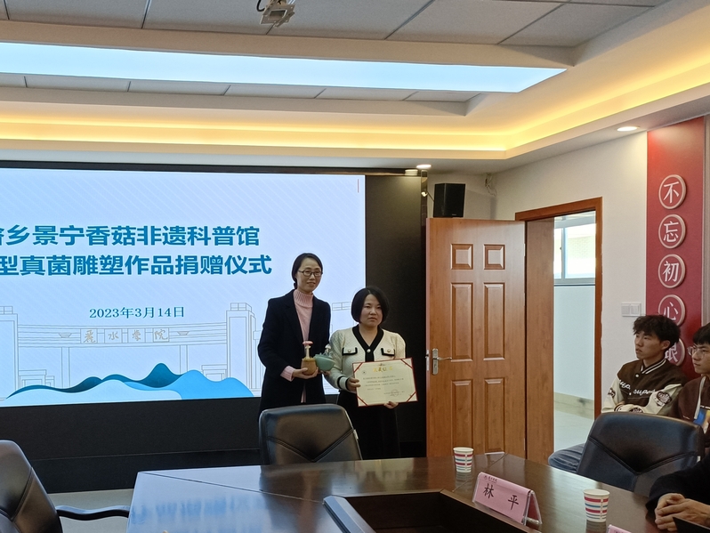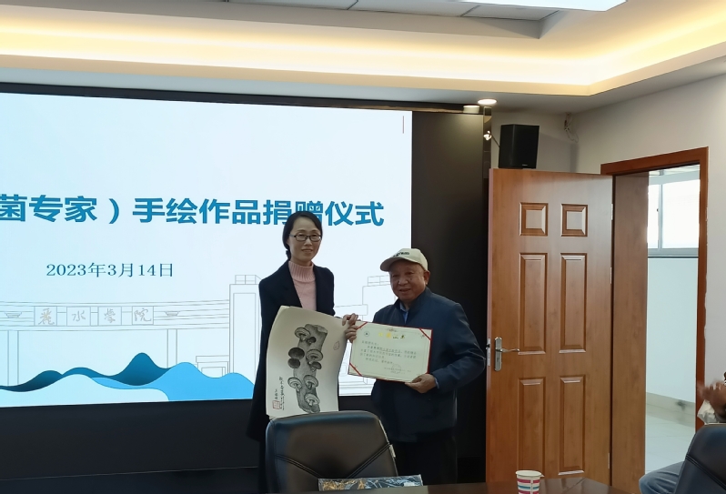 3月14日,我校在图书馆十楼会议室举行了食用菌作品捐赠仪式,“菇神四世”、野生菌专家、高级农艺师、81岁高龄的吴锡朋老先生向我校图书馆捐赠了野生菌手绘作品20幅及《庆元菌类手绘图谱》一书,景宁香菇非遗科普馆馆长王星捐赠了大型真菌捏塑作品20件。景宁香菇文化非遗馆导师林平、景宁食用菌捏塑大师雷东洪、我校中医药与健康产业学院校企联合课程《食用菌产业的传承与创新》班师生及“蘑力菌苑”大学生创业工作室代表参加了捐赠仪式。
