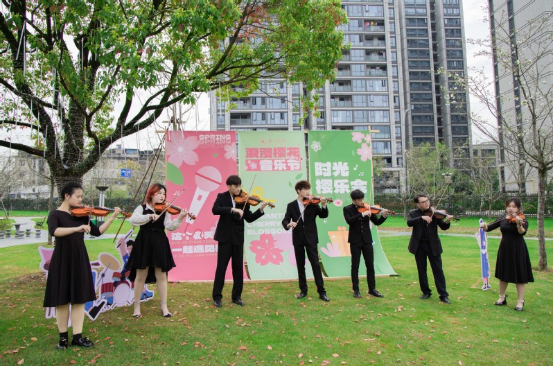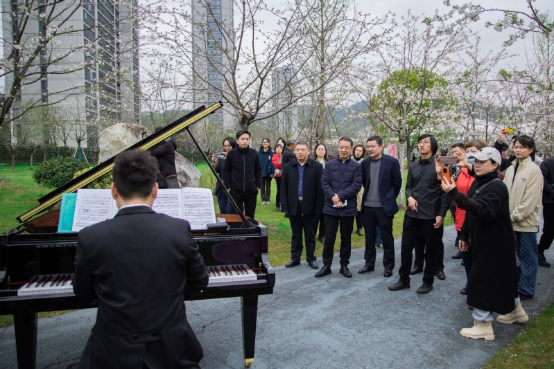 叶华松致开幕辞时表示,我校樱才园是丽水市政府2021年立项建设的“增花添彩”项目,该项目不仅为全校师生扩展了学习、休闲场所,同时也有助于推动青年发展型城市建设,打造丽水文化新高地。他希望,广大青年朋友莫负韶华,在“浪漫樱花”音乐节活动中锻炼本领,寻找兴趣,将青年发展融入社会、融入城市,以樱才园为起点构筑起学校内外相互交流与发展的桥梁。最后,他热忱邀约广大师生和市民朋友来校赏樱品乐。