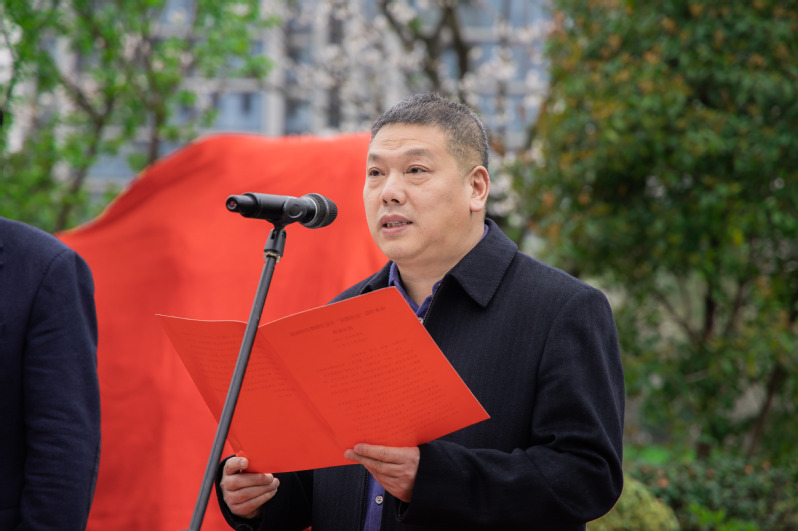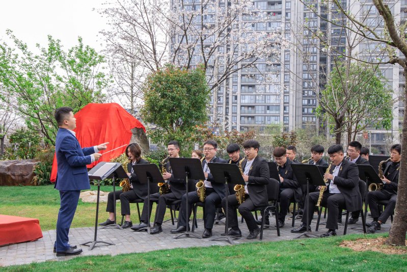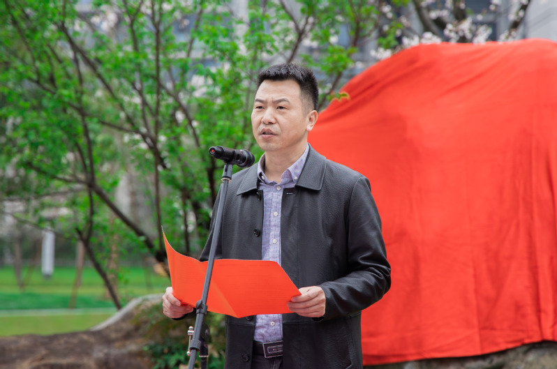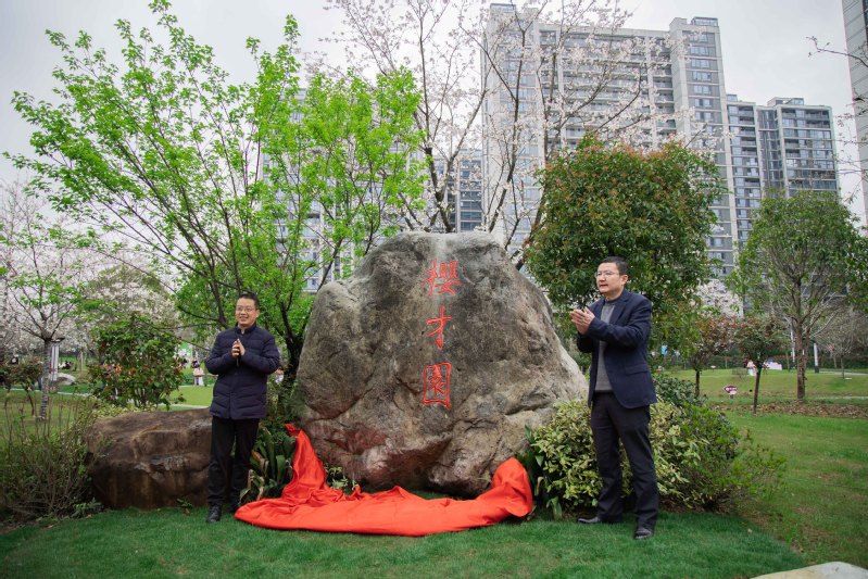 开幕式在萨克斯风室内乐团演奏悠扬的迎宾曲中展开。市大花园建设发展中心主任、党组副书记周海忠与校长李俊杰一同为樱才园石刻揭幕。