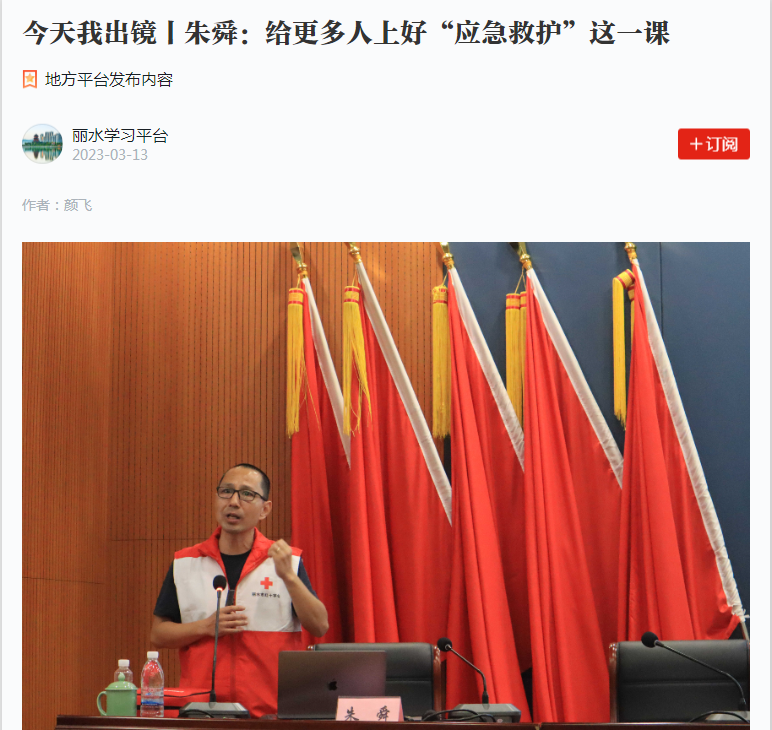 3月13日,学习强国丽水学习平台刊发了中国红十字会“会员之星”、我校教师朱舜的人物专访。