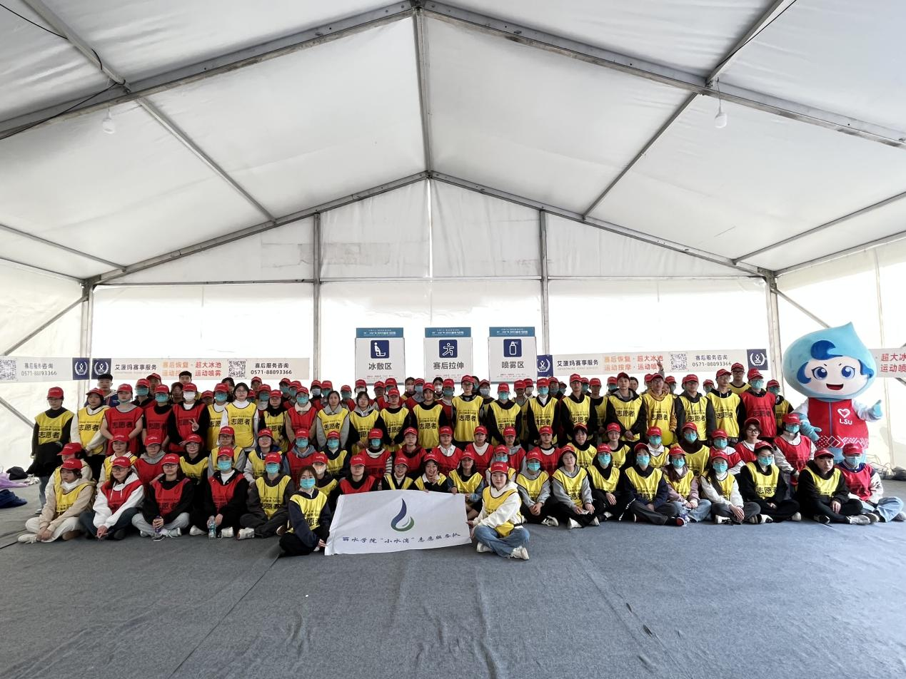 我校志愿者们凌晨5点开始投入工作,负责场地布置、存取包、咨询引导、检录维护、赛道补给、医疗观察等14项工作。小水滴ip形象“水宝”也来到了现场,为选手们加油助威。活动从开始到结束,志愿者们以无私奉献的精神、细致热忱的服务,展现着我校大学生的青春风采。