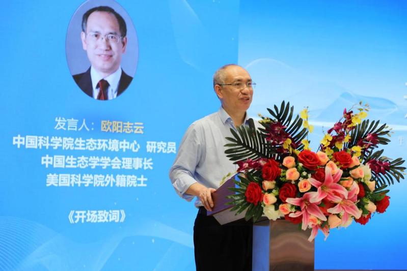 中国科学院生态环境中心研究员、中国生态学学会理事长、美国科学院外籍院士、中国(丽水)两山学院院长欧阳志云致开场辞。美国科学院院士、斯坦福大学自然资本项目创始人Gretchen Daily和Stephen Polasky,联合国环境规划署世界保护监测中心(UNEP-WCMC)中国事务官孟菡,国家行政学院生态文明建设教研室教授、主任李宏伟,中科院生态环境中心研究员、国家重点实验室副主任郑华等作主旨报告。