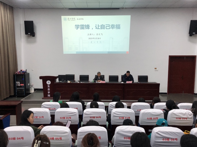为深入学习宣传贯彻党的二十大精神,贯彻落实习近平总书记对深入开展学雷锋活动作出的重要指示精神,深刻把握雷锋精神的时代内涵,紧紧围绕培育和践行社会主义核心价值观,大力弘扬雷锋精神和志愿精神,3月28日,生态学院在博文楼开展纪念学雷锋60周年专题讲座暨“雷锋月”总结活动,丽水职业技术学院原党委副书记、纪委书记,市关工委宣讲员吕文飞老师出席活动并作专题讲座。