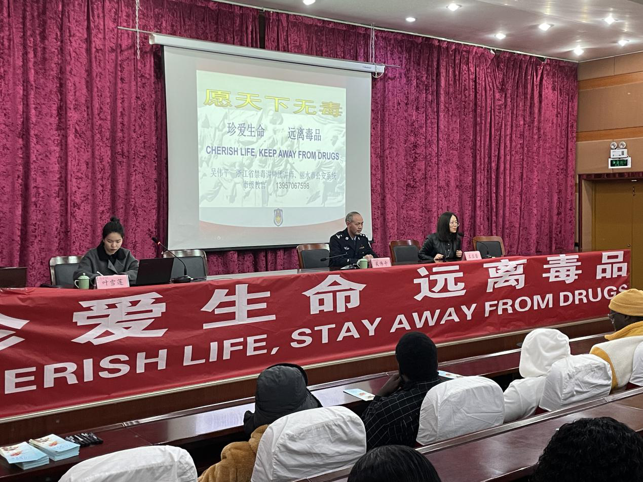 为进一步加强我校留学生的禁毒宣传教育工作,引导留学生树立健康向上的生活理念,近日,我校邀请浙江省禁毒讲师团讲师、丽水市公安系统市级教官吴伟平为留学生开展禁毒知识宣传讲座。