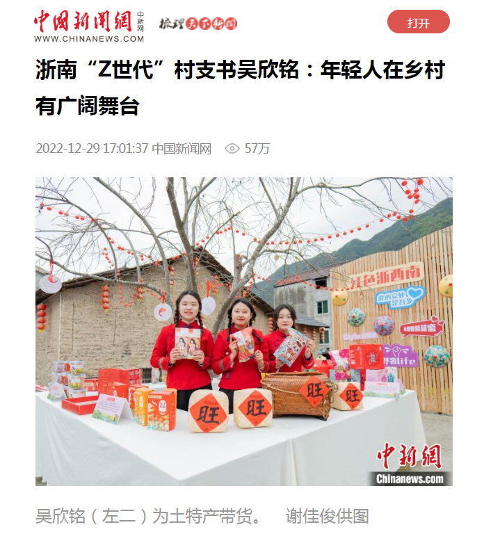 2022年12月29日,中国新闻网APP刊发了我校2021届毕业生吴欣铭助力乡村振兴的消息。