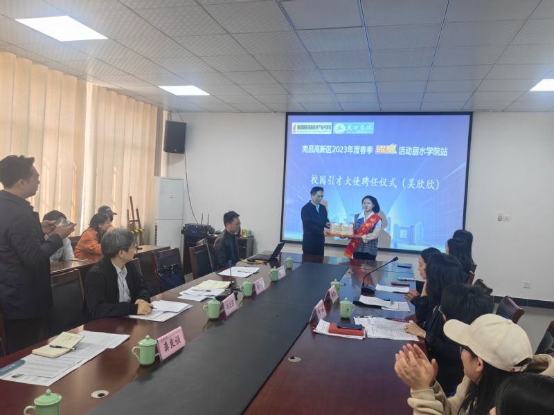 江西籍2022级学前教育专业吴欣欣同学受聘为南昌高新区“校园推广大使”,并作表态发言。会上,江西籍学生向南昌高新区咨询相关人才政策,并表达自己希望回到家乡贡献的意愿。