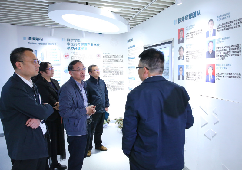 在中医药与健康产业学院,王利琳考察了平台实验设备运行情况、参观了展厅的成果展示、听取了平台工作汇报,并与该院的干部教师座谈,重点就平台发展方向、人员配备、实验室管理制度等方面建设进行了深入交流,提出了指导性意见。王利琳充分肯定该平台成功创建省级产业学院取得的阶段性成效,希望该平台要围绕长远发展定位,立足丽水实际,充分发挥平台优势,既要服务好丽水中医药与健康产业,也要为学校的相关专业人才培养提供帮助与支持。王利琳要求,下一步,该平台要紧抓核心目标任务这个“牛鼻子”,在管理上谋实策、出实招、求实效,努力夯实建章立制“压舱石”,通过“平台+课题组”的模式,做实学科平台,提升平台能级,多产出一批“硬核成果”,努力成为学校对外展示科技创新的“重要窗口”。