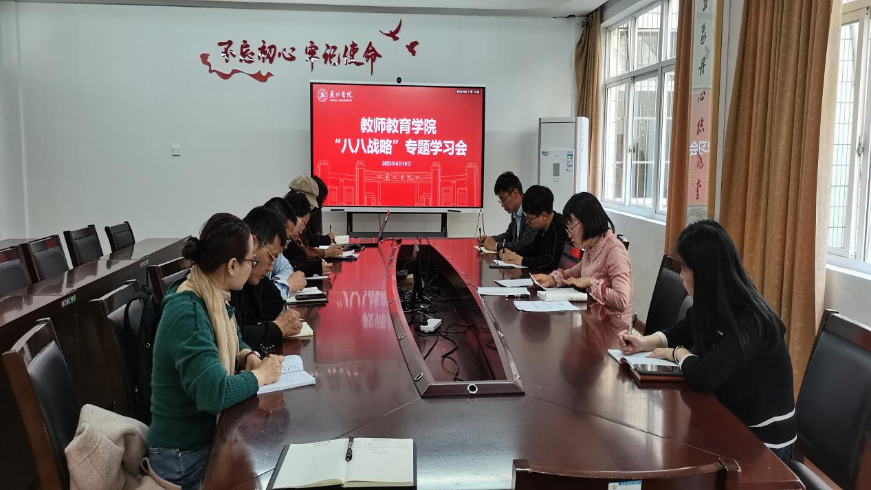 日前,全省学习贯彻习近平新时代中国特色社会主义思想主题教育动员大会召开,教师教育学院积极响应省委号召,学院党委组织各支部书记以《干在实处 勇立潮头——习近平浙江足迹》《“八八战略”思想与实践》等为基础,专题学习八八战略的概念、意义等内容。
