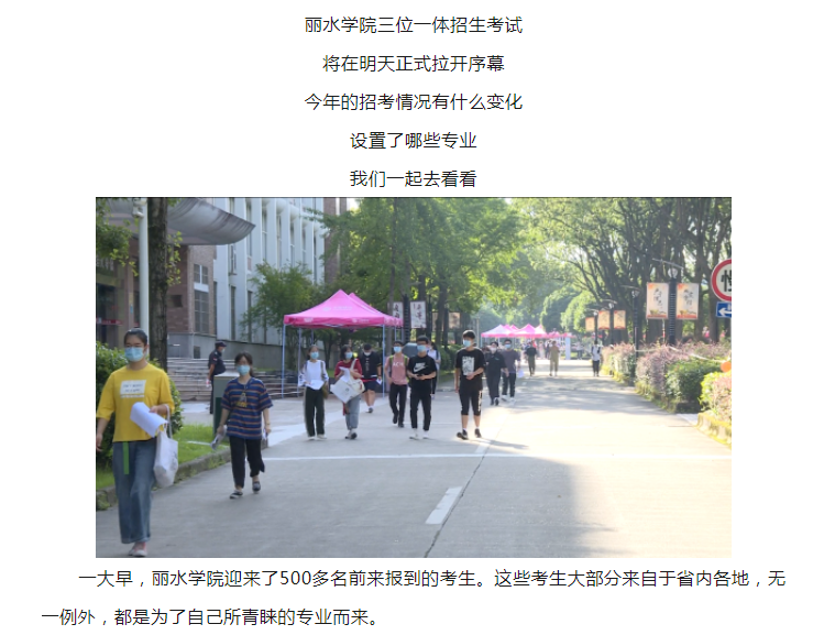 4月15日,丽水新闻微信公众号刊发了我校“三位一体”即将开考,小学教育专业受热捧的消息。