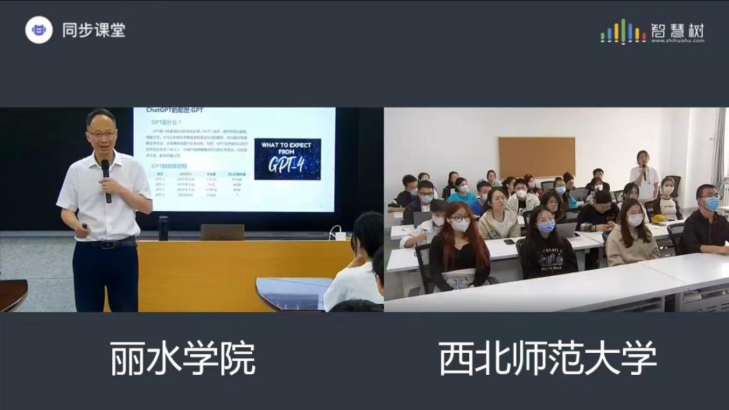 活动主要分为两部分开展,我校潘巧明教授首先从“什么是ChatGPT?”引入,用形象生动的案例讲述了ChatGPT的技术原理和发展历程,之后又分享ChatGPT在教育中的应用场景和对未来教育的影响,同时也提出了我们面临的挑战和应对策略。之后,由两校学生就“ChatGPT与未来教育”的相关内容做了云端讨论交流,现场气氛活跃。