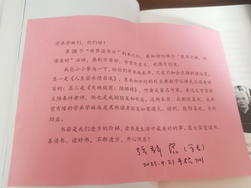 在第28个世界读书日到来之际,为大力倡导学生读书之风,营造浓厚书香氛围,医学院开展了“图书交换,悦读美好”主题的图书漂流交换活动。除了促进同学们之间开展书籍交换,活动还吸引了校友邮寄《人生若水径自流》《天地放翁:陆游传》等书籍参与其中。