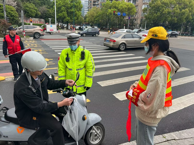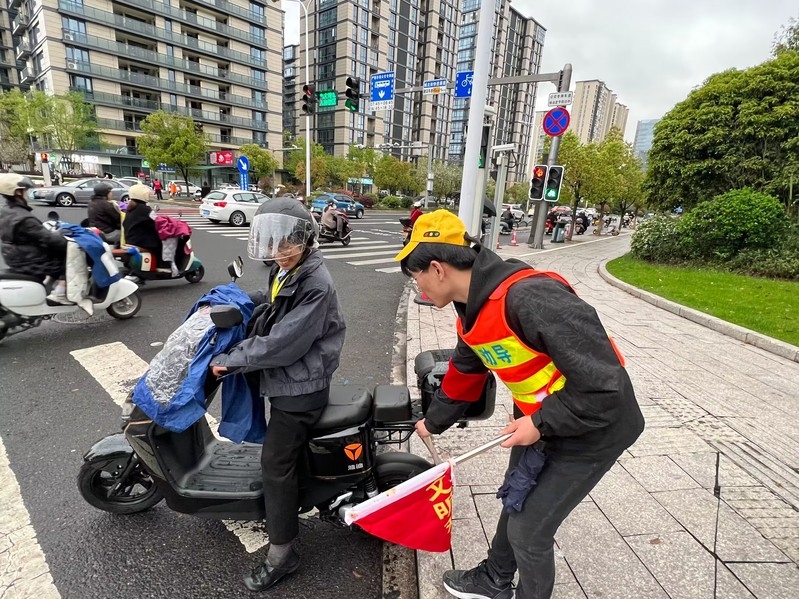 身穿红马甲、头戴小黄帽,手执“文明劝导”指挥旗……近半个月以来,生态学院文明交通劝导的志愿者来到中山街十字路口处,积极投身到文明交通的志愿活动中,协助交警维持交通秩序、站岗执勤,从而保障道路交通的有序、安全和畅通。