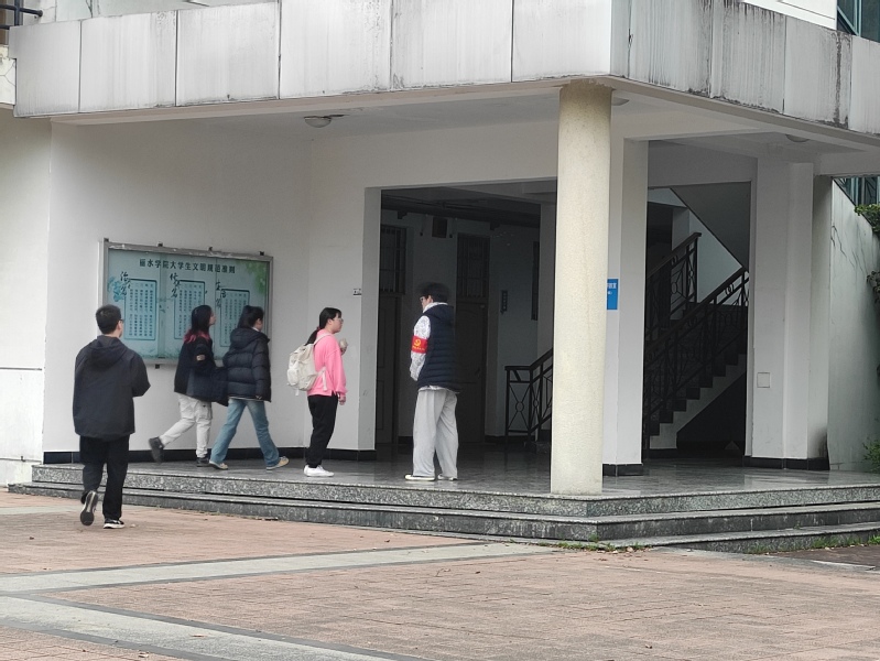 “同学,教学区不能带早餐进来”、“垃圾不要乱扔哦”……每天早上在教学楼12B一楼,总能看到生态学院的志愿者们分批在各进出口进行文明劝导,制止将早餐带进教室等不文明行为。经过一段时间的督查,同学们自觉遵守文明行为,带早餐进教室的人数明显减少。“之前为了节约时间就想着直接在教室吃早餐。今后会养成早起吃早餐的习惯,维护好校园环境。”同学在接受志愿者劝导时表示。