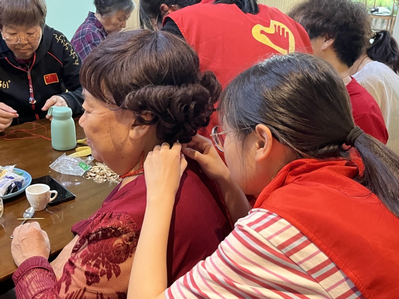 活动现场,志愿者为老人们戴上“生日帽”,齐唱生日歌,与老人们一起点燃蜡烛许愿,最后将满含祝福的生日贺卡送给了老人,白云街道服务中心充满欢声笑语。庆祝生日之余,志愿者还陪老人们叙家常,教老人使用现代电子设备,与老人一起串珠、剪纸、编绳结。