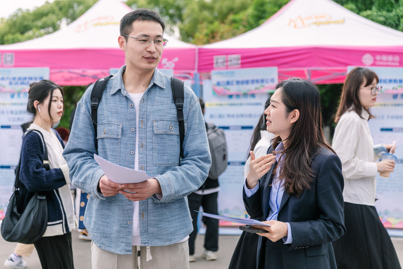招聘会上,开设了招聘直播间、政策解读服务站以及会员服务中心,力争为广大招聘企业以及我校同学带来良好的招聘体验。在谈及就业意向时,有不少同学都表示有意愿留在丽水发展。