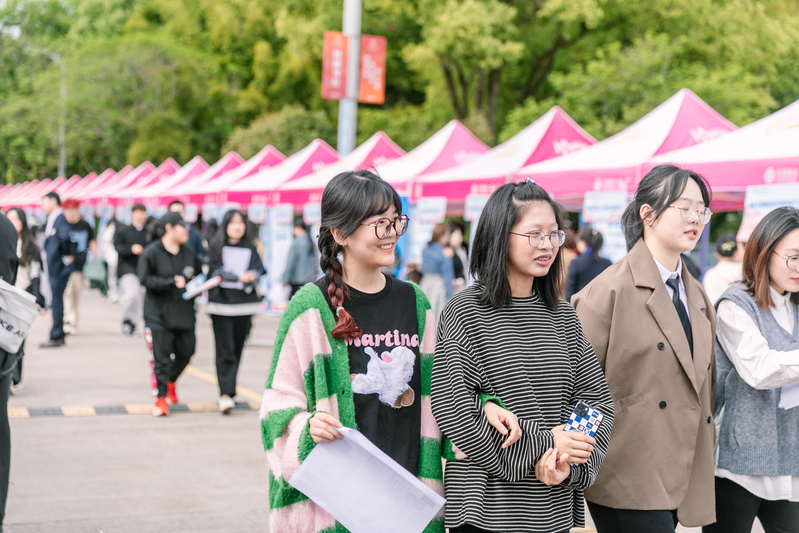 据悉,本次招聘会吸引丽水近300家用人单位参加,设置岗位千余个,其中还在党群服务中心设置了民建企业专场,为同学们提供了多类型、多层次的就业选择。招聘会现场人头攒动、气氛热烈,不少企业面前围起了前来咨询的同学。同学们积极与用人单位进行沟通,招聘单位工作人员就同学们关心的岗位需求与薪资待遇等问题进行了耐心的解答。热烈的气氛还吸引了很多非毕业班的同学前来驻足观摩,提前了解企业招聘流程及要求。