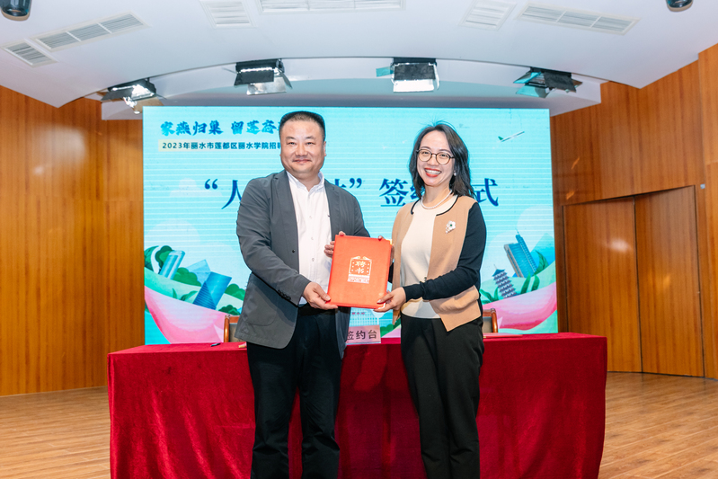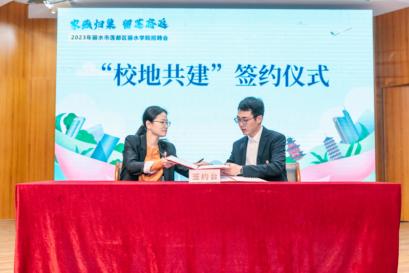 “家燕归巢·留莲忘返”引才合作启动仪式上还设立了“引才工作驿站”,聘请了“引才大使”,签署了校地共建合约,为我校学子详细解读了莲都区人才政策。