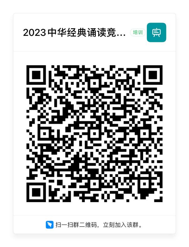 1.欲参加的同学请抓紧加入2023中华经典诵读大赛钉钉群,具体比赛细则见群通知。