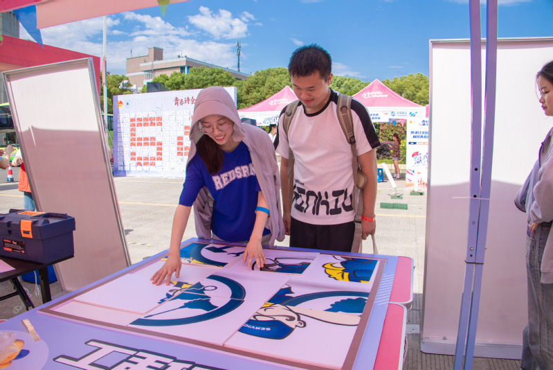 之后,“缤纷丽院”集市、“活力丽院”剧场、“青春丽院”快闪等多个活动也相继开展,呈现出年轻态、活力范、时尚感的校园风貌。在“缤纷丽院”集市里,11个志愿服务体验项目展示了校志愿服务活动的风采,“关注弱势群体,你我温暖同行”“家电小义诊”“巧手造万物,解忧手工坊”等摊位上不仅提供志愿服务,还有趣味游戏,让同学们体验残疾人和心理亚健康群体的生活,同时学习助残知识和生活窍门,吸引了不少人驻足观看。“活力丽院”剧场上,古风走秀、街舞、口琴乐团表演轮番上演,呈现出东西结合、古今交融的校园文化生态。“丽院·青年说”大学生宣讲团的宣讲员们来到同学们中间,宣讲“八八战略”和“青年奋斗”主题,为坚守“红色根脉”、担当时代使命做好榜样示范。