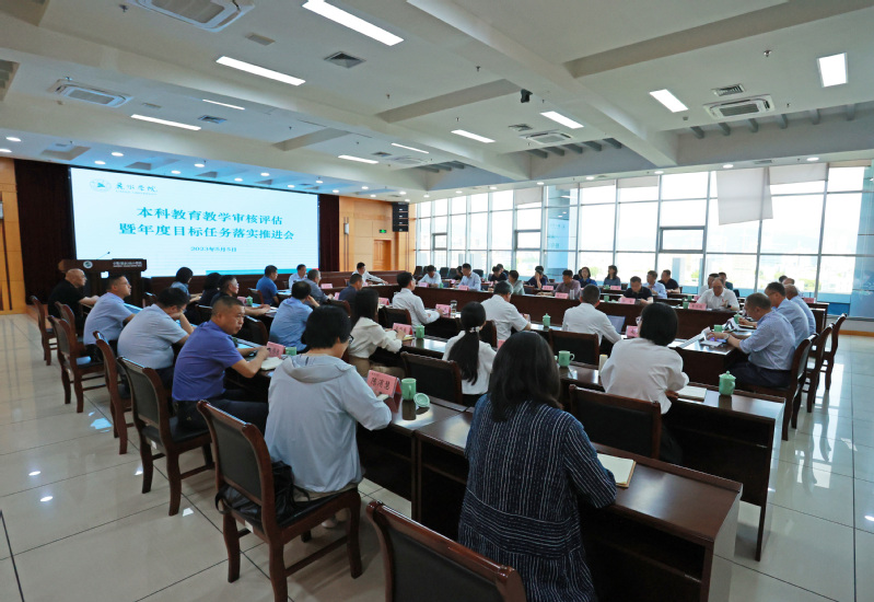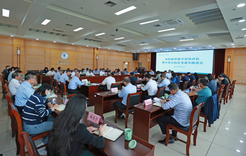 全体中层干部,教务处、学生处、教育督导与评估中心全体人员,审核评估专班人员参加会议。