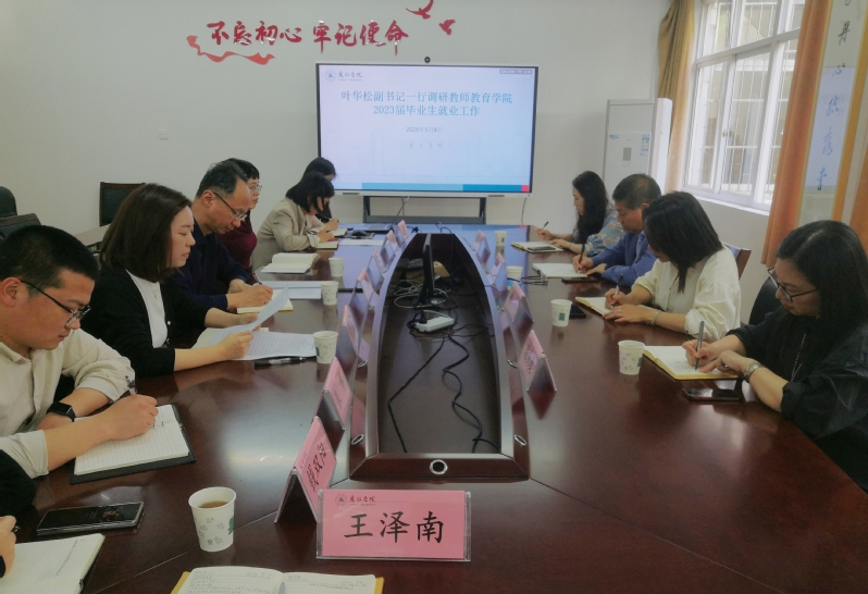 5月8日下午,校党委副书记叶华松到教师教育学院调研2023届毕业生就业工作,学生处、团委负责人陪同,教师教育学院领导班子和辅导员参加调研座谈会。