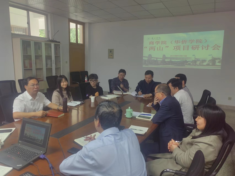 为助推商学院(华侨学院)教师更好地融入地方服务,提升服务水平,日前,商学院(华侨学院)在守勤楼4203会议室召开“两山”项目专题研讨会,邀请丽水市政协原副主席、中国(丽水)两山转化研究院院长饶鸿来和中国(丽水)两山学院执行院长、中国(丽水)两山研究院院长刘克勤做专题辅导。