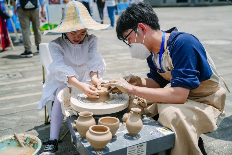 普及周活动包括“‘与你相会’社科大集市,点燃山区科普引擎”“‘青春活力’音乐朗诵会,焕发古堰画乡新生机”“‘非遗传承’宋韵点茶,激活丽水文化竞争力”等系列活动。我校商学院师生党支部组织清廉茶文化志愿服务队,承担宋韵点茶活动;中国青瓷学院学生创新创业团队在社科大集市中通过青瓷创意产品展示、拉胚体验活动等向往来游客展现千年青瓷魅力。