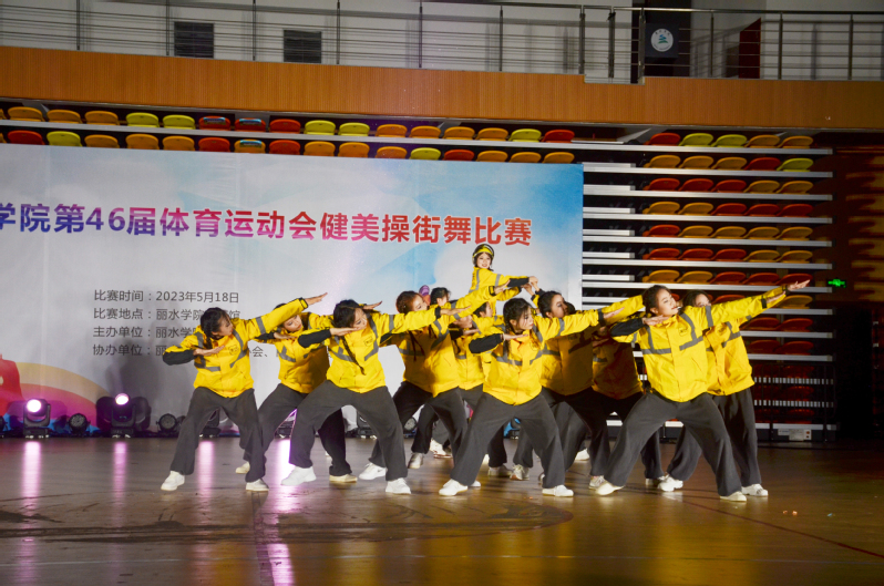 全民健身迎亚运,信心满怀奔共富。5月18日,我校第46届体育运动会健美操街舞大赛在体育馆举行。