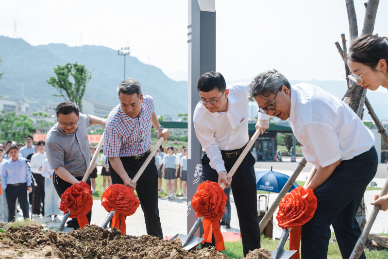 仪式上,参与活动的嘉宾一起为树木培土,并为丽水学院校训石揭幕。松阳校区师生朗诵诗歌《值此青绿》,为学校116周年华诞献上诚挚的祝福。