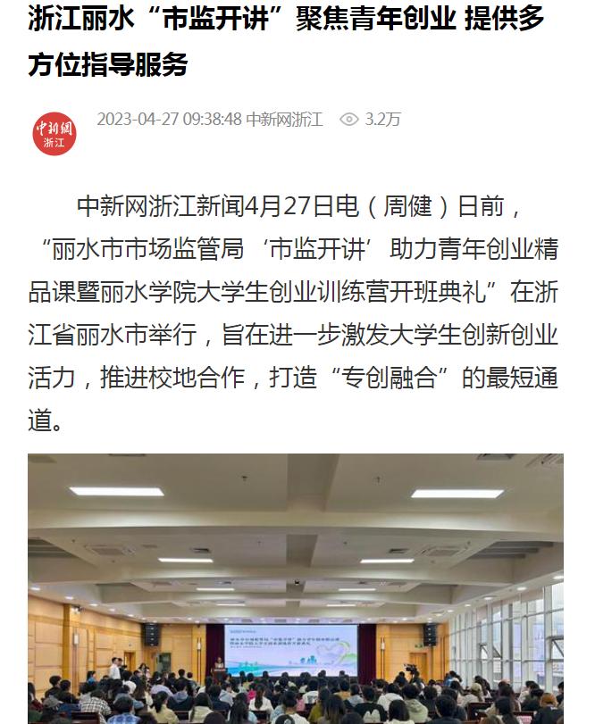 4月27日,中国新闻网客户端刊发了我校举行大学生创业训练营开班典礼的消息。
