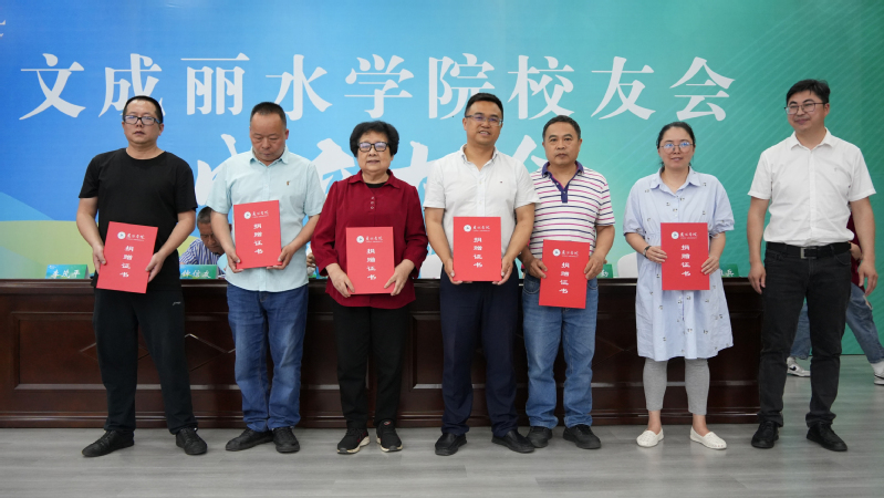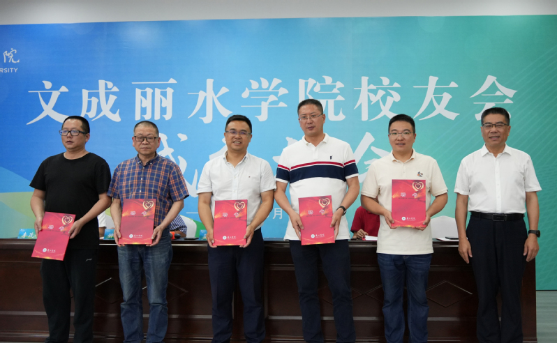 蒋黎红为文成丽水学院校友会授牌,并为当选的名誉会长、会长、副会长等颁发聘书。现场还举行了捐赠仪式,胡雄兵、程飞各向母校捐赠人民币壹万元,钟金莲、雷克丑、胡雄兵、钟春标、钟雪华、兰潮平、包芳芳等向母校捐赠自己编著的图书。