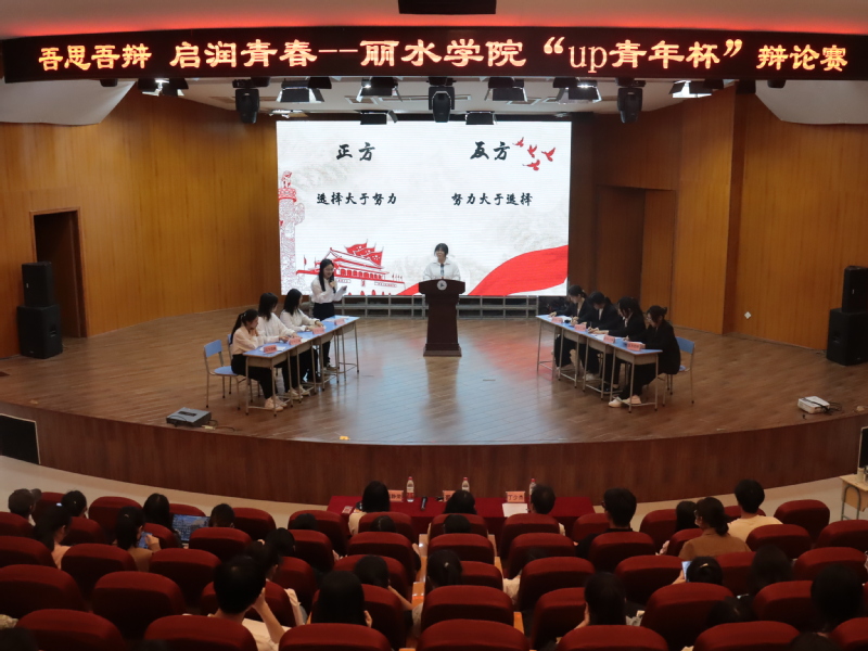 为庆祝我校办学116周年,弘扬爱国主义情怀,营造积极、健康、快乐、向上的学习氛围,展现我校青年学子的青春风采,5月24日下午,由共青团丽水学院委员会主办、共青团丽水学院商学院(华侨学院)委员会承办的“吾思吾辩,启润青春”“up青年杯”辩论赛决赛在西区音乐厅举行。