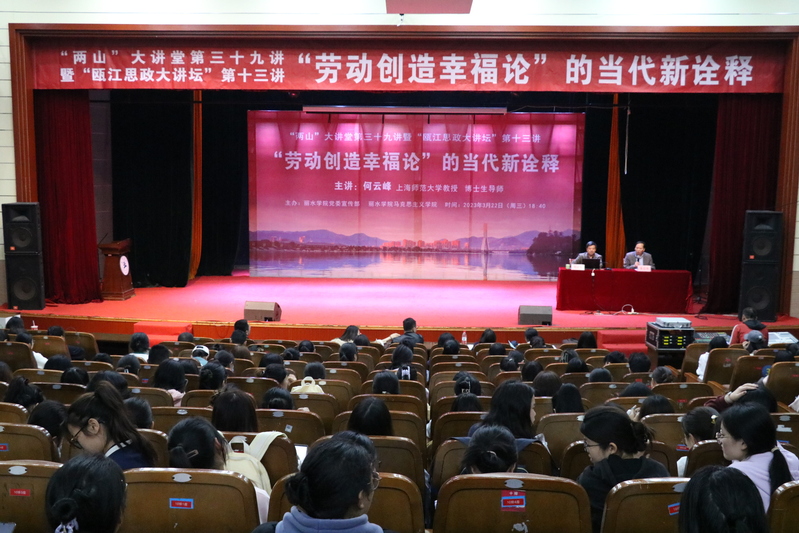 近日,“瓯江思政大讲坛”第十三讲开讲。上海师范大学何云峰教授应邀为我校师生作主题为“‘劳动创造幸福论’的当代诠释”的专题讲座。讲座中,何教授从劳动与幸福关系的思考出发,他从劳动推动属人性提高和丰富的具体体现、当今时代探讨劳动与幸福关系问题的意义等方面对“劳动创造幸福论”进行了深入分析。何教授指出,任何劳动都不可能只有幸福没有辛苦,要最大限度地提高劳动对幸福的正向推动力。