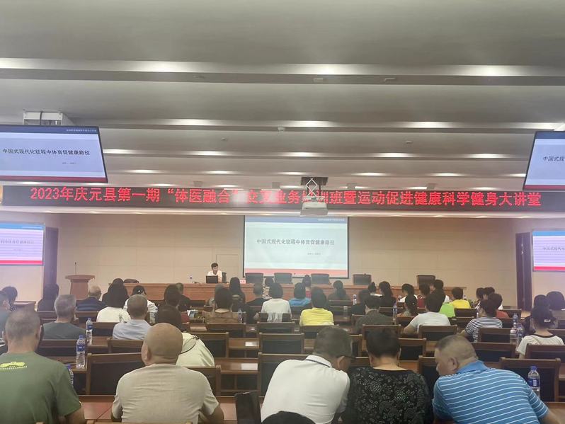 日前,2023年庆元县第一期“体医融合”交叉业务培训班暨运动促进健康科学健身大礼堂活动在县人民政府行政服务中心举行,我校体育教育系教师党支部阎朝兵书记应邀开展了以“运动促健康”为主题的科普宣讲,庆元县文广旅体局部分领导、体育协会骨干、社会体育指导员代表等近200人聆听了讲座。