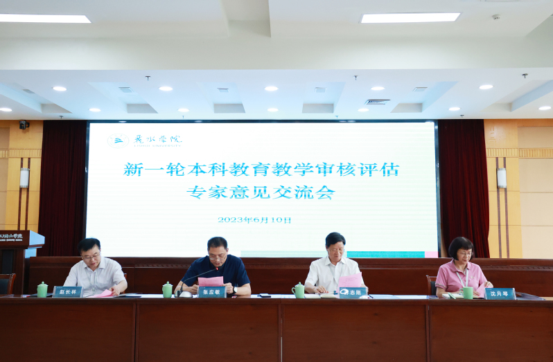 6月10日下午,新一轮本科教育教学审核评估专家意见交流会在我校图书馆9楼会议室召开。审核评估专家组副组长、宁波工程学院原党委书记苏志刚以及审核评估专家组全体成员,丽水市教育局党委书记、局长范寿仁出席会议;我校校长李俊杰及其他校领导班子成员参会。会议由浙江省教育考试院评估部主任张应敏主持。
