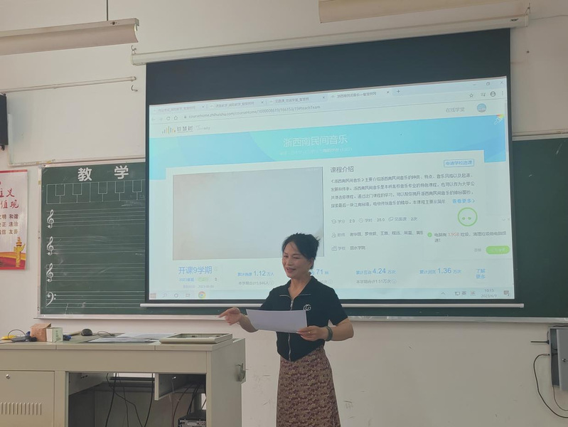 一直以来,音乐学院《浙西南民间音乐》课程坚持以“民族特色,地方情怀”为指导,采用线上线下混合式教学、教学团队集体备课的方式,创新运用各类资源,立足于教学实际,将《浙西南民间音乐》的实践教学与课程改革、学科教育、德育文化相融合,致力于培养出更多优秀音乐学子,为本土民间音乐的传承注入青春力量,增强同学们对非遗文化的保护意识和对本土戏剧文化的认同感、自豪感。