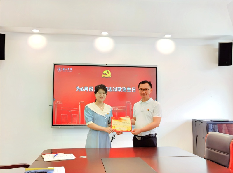 会议伊始,由廖峰领誓,全体党员重温入党誓词,坚定理想信念。并为6月份入党的同志过政治生日。