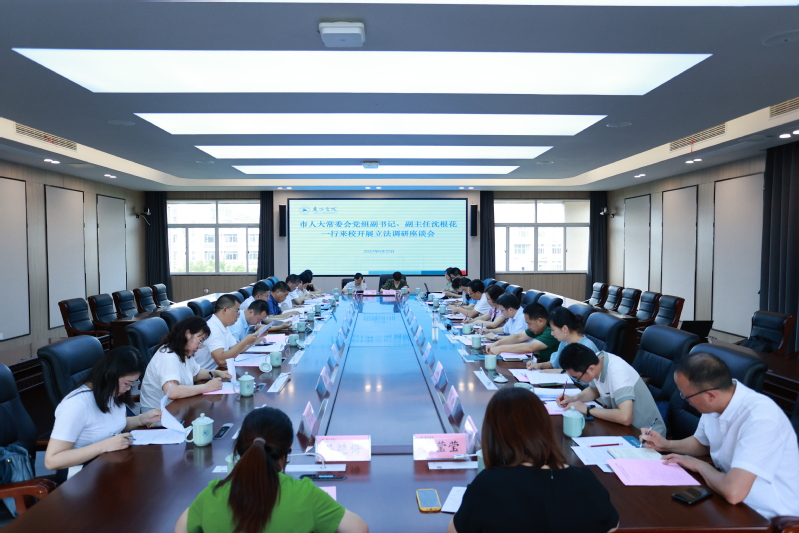 6月25日,市人大常委会党组副书记、副主任沈根花,市人大常委会法工委主任陈仰勇,市人大法制委员会副主任委员蒋世懿等来我校调研,就即将出台的《丽水市促进人才科技融合发展条例》进行意见征集。我校校长李俊杰、副校长蒋黎红,丽水市中心医院党委委员、组织人事处处长、莲都区人民医院党委书记徐民等出席会议。