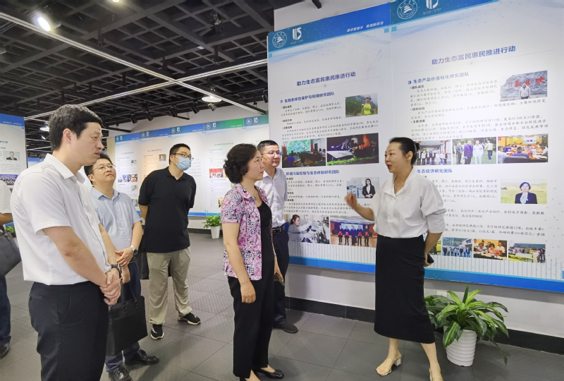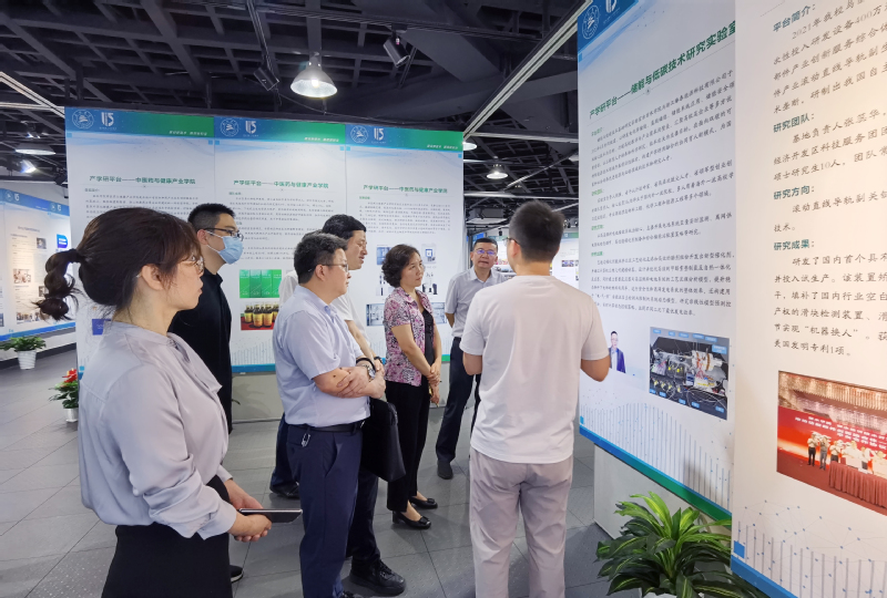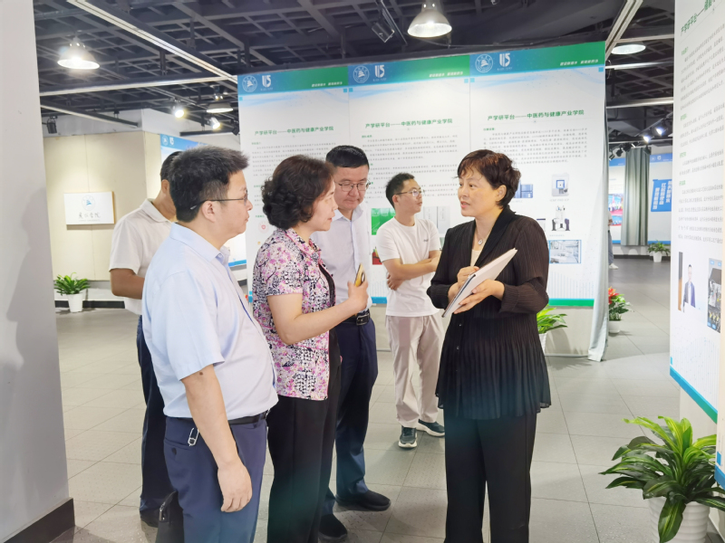 会前,沈根花一行调研走访了我校中医药与健康产业学院、科研与地方服务成果展等。
