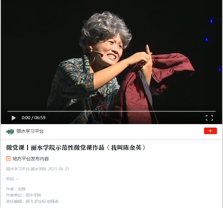 6月25日,学习强国丽水学习平台刊发了我校示范性微党课作品《我叫陈金英》。