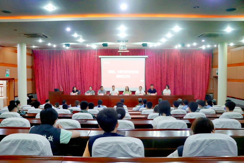 为庆祝中国共产党成立102周年,深入学习贯彻党的二十大精神,有效衔接主题教育,推进“强基质量提升年”活动走深走实,打造特色党建品牌,6月28日,学校在党群服务中心报告厅举行军魂社、女警中队两个特设党支部挂牌成立仪式,党委委员、组织部长、统战部长赵卫川出席会议并讲话。