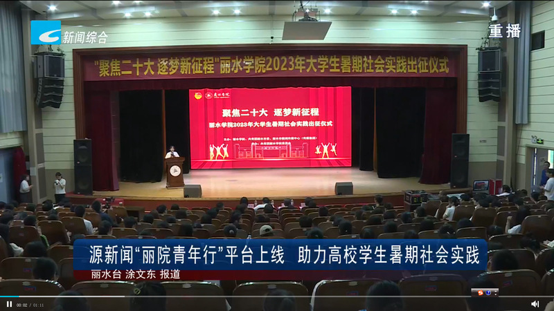 6月29日,丽水电视台新闻综合频道播出我校举行暑期社会实践出征仪式,源新闻“丽院青年行”平台上线助力学生暑期社会实践消息。