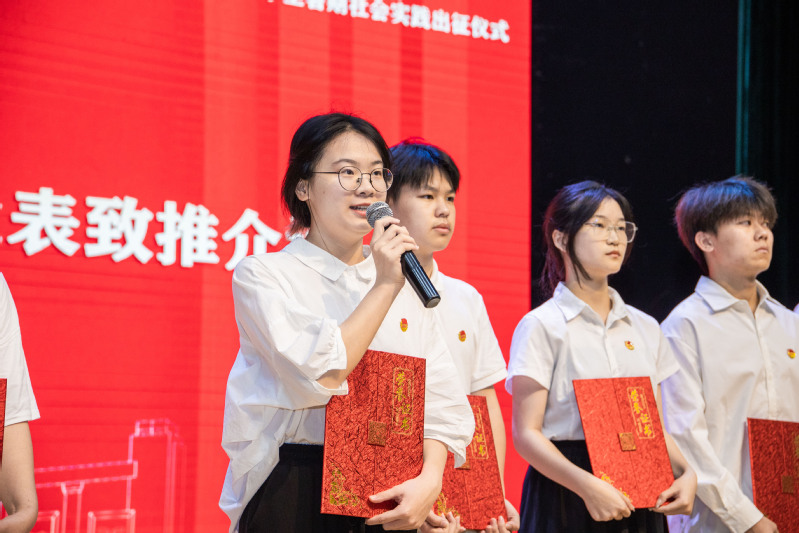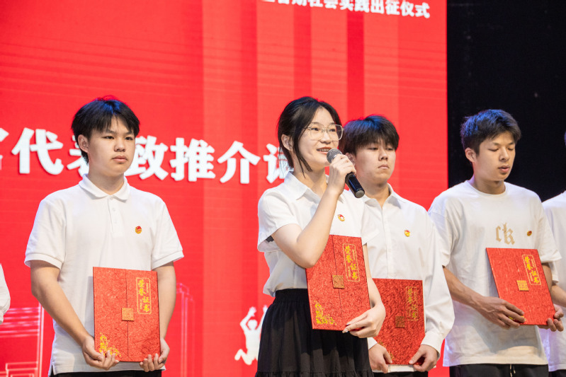 出征在即,叶华松向即将奔赴各地开展暑期社会实践的的全体师生致以亲切的问候,对莅临本次活动的嘉宾表示诚挚的欢迎。他指出,青年工作直接关系中国特色社会主义事业后继有人、兴旺发达,乘着丽水建设青年发展型城市的东风,学校也出台了《丽水学院助力丽水市建设青年发展型城市行动方案》,努力让丽水学院成为青年发展型城市形象展示的重要窗口和闪亮名片。学校还将贯彻落实共青团中央、全国学联印发《关于增强新时代大学生社会实践活动实效深化共青团实践育人工作的意见》,聚焦重点方向内容,丰富实践内涵,强化工作举措。叶华松寄语即将出征的同学们:一要以实为先,大兴调查研究,扩展暑期社会实践深度;二要以情为引,弘扬丽院精神,提升暑期社会实践温度;三要安全为主,坚持防范第一,守好暑期社会实践底线。