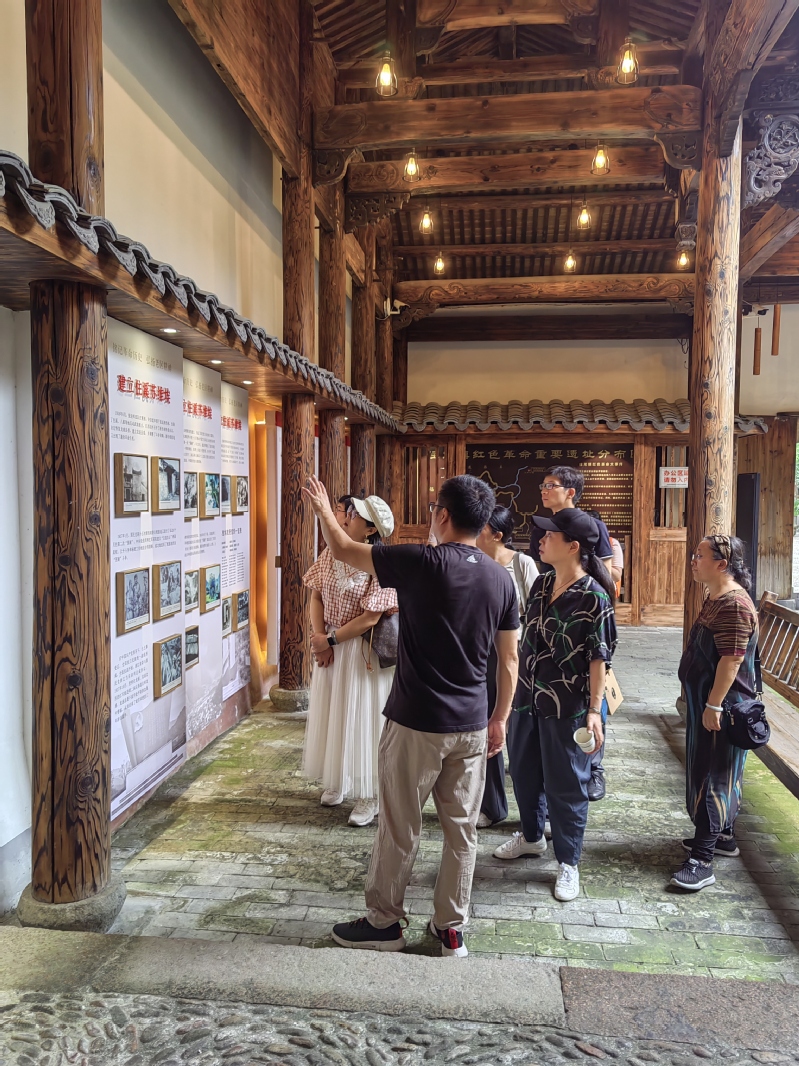 住龙是浙西南游击根据地的中心区域,是土地革命战争时期由粟裕、刘英率领的中国工农红军挺进师在浙江创建的第一块红色根据地。为深入学习贯彻党的二十大精神,开展“凝心铸魂强根基、团结奋进新征程”主题教育,全体人员来到有“浙江小井冈”之称的住龙镇红色教育基地,沿着抗战旧址——红军街、弹孔广场、苏维埃办公旧址等进行现场教学,在红军学堂专注地观看《红色住龙》和《28发子弹》视频,在浙西南书苑开展党的二十大精神专题学习,传达学习中共中央政治局委员、中央统战部部长石泰峰在各民主党派、无党派人士和党外知识分子、新的社会阶层人士“凝心铸魂强根基、团结奋进新征程”主题教育动员会上的讲话精神等,分享交流“八八战略”实施二十周年学习体会。全体人员还前往龙泉住龙生物多样性体验馆,考察调研红绿融合乡村振兴发展。