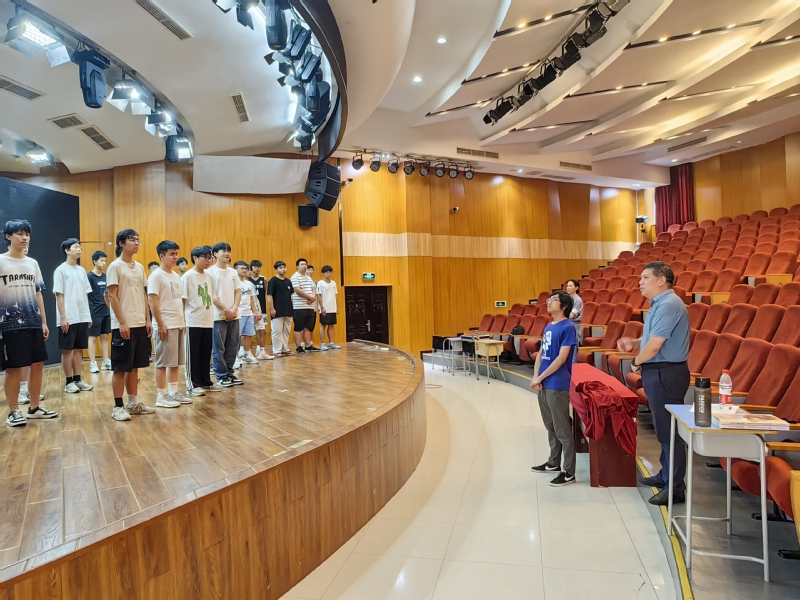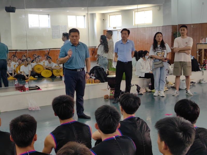 在观看完同学们的演出之后,叶华松对我校历年来在大艺节上取得的成果表示了肯定,同时鼓励正在备战的同学们刻苦坚持,克服高温,在最后关头加紧冲刺完成初赛拍摄工作。初赛之后也要保持竞技状态,精益求精,为我校参加大学生艺术节现场展演做好充分准备。