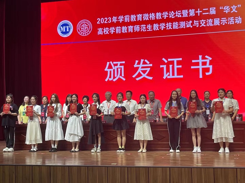 “华文”高校学前教育师范生教学技能测试与交流展示活动是具有广泛影响力的全国师范类赛事。本次比赛共43所高校、242名参赛选手参加,经过现场激烈角逐,我校选手以严谨的教学设计、突出的教学技能、精到的答辩陈诉,充分展现了学前师范生的风采。成绩的取得,是我校教师教育学院一直以来注重学生专业培养、提高职业能力、践行知行合一的充分体现。