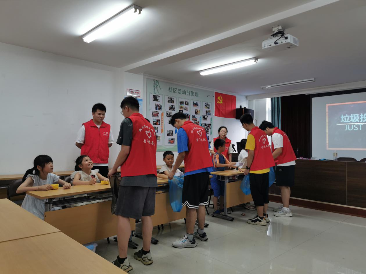 据悉,我校在北郭桥社区两支团队主要围绕陪伴小朋友健康快乐成长开展实践,设计有书法课程、游戏棋艺、乐器表演、垃圾分类、暑期防溺水教育、防范电信诈骗教育等内容。在解决社区居民暑假期间不能兼顾工作与孩子问题的同时,开展社会问题调查,陪伴社区小朋友度过一个愉快、轻松的暑假。