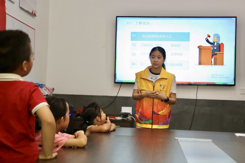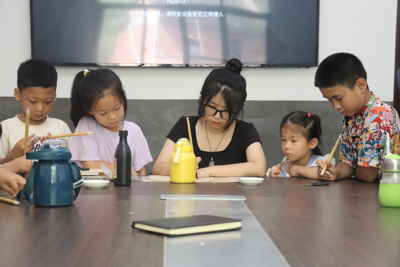 行知行团队通过开设红色党史课程,宪法课程,武术和啦啦操课程,书法、剪纸、扎染、团扇制作等优秀传统文化课程以及亚运会主题手抄报制作活动等丰富多彩的暑期课程内容,丰富留守儿童暑期生活的同时,促进孩子们“德智体美劳”全面发展。